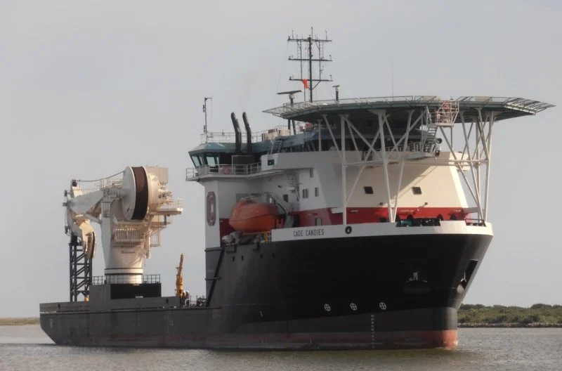 The feeder barges MARMAC 400 & PREVAILING WINDS, assisted by the tugs NICOLE FOSS, MICHELE FOSS, EARL W REDD, HAWAII FOSS, will assist in supplying materials for installation from the staging area in New Bedford, MA. The OSV CADE CANDIES and C-PIONEER will be supporting crew transfer operations.