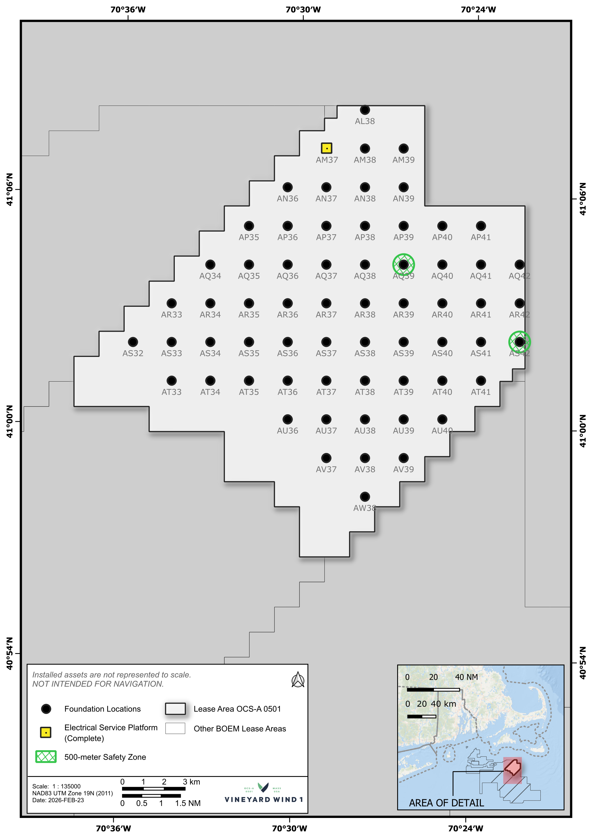 LOCATION(S): Completed monopile foundation (MP) and transition piece (TP) locations in OCS-A 501 lease area