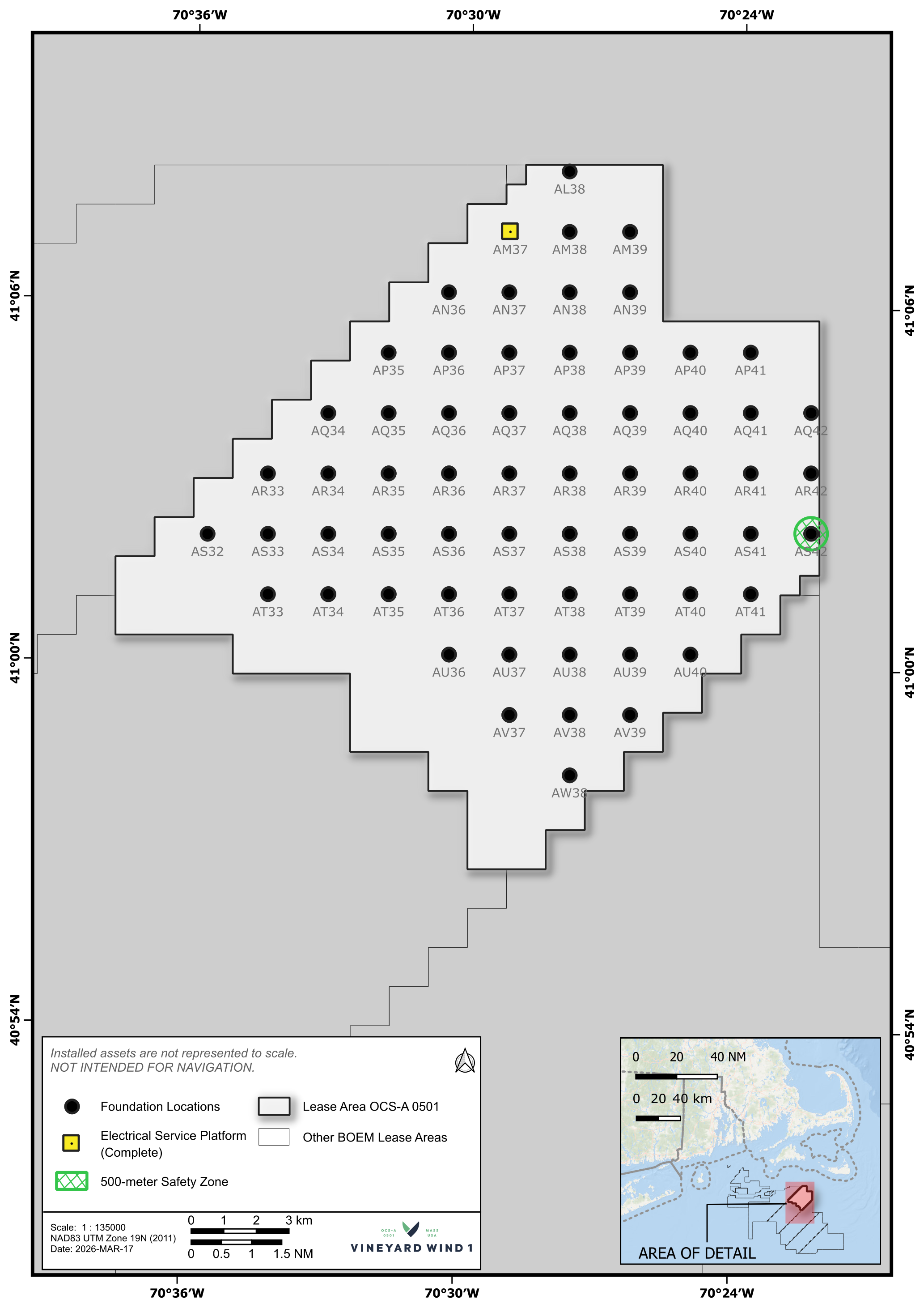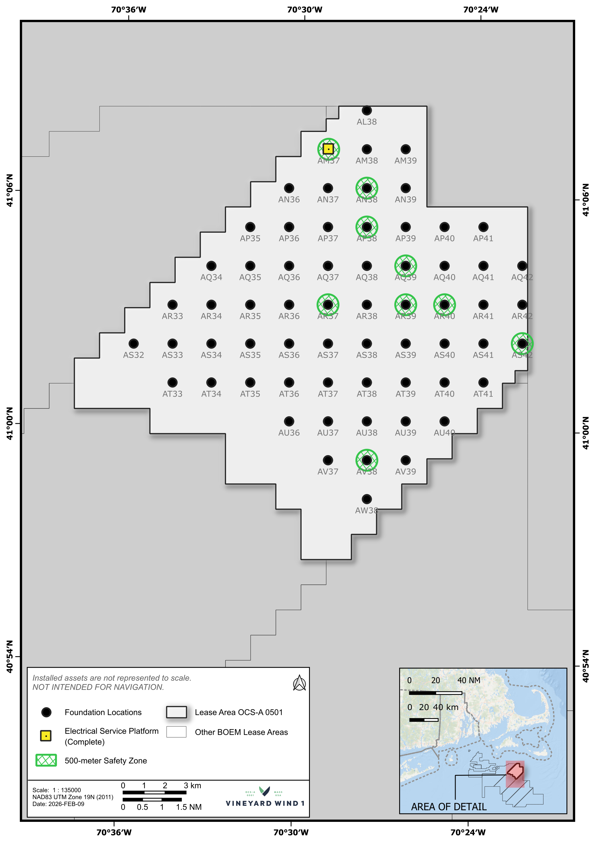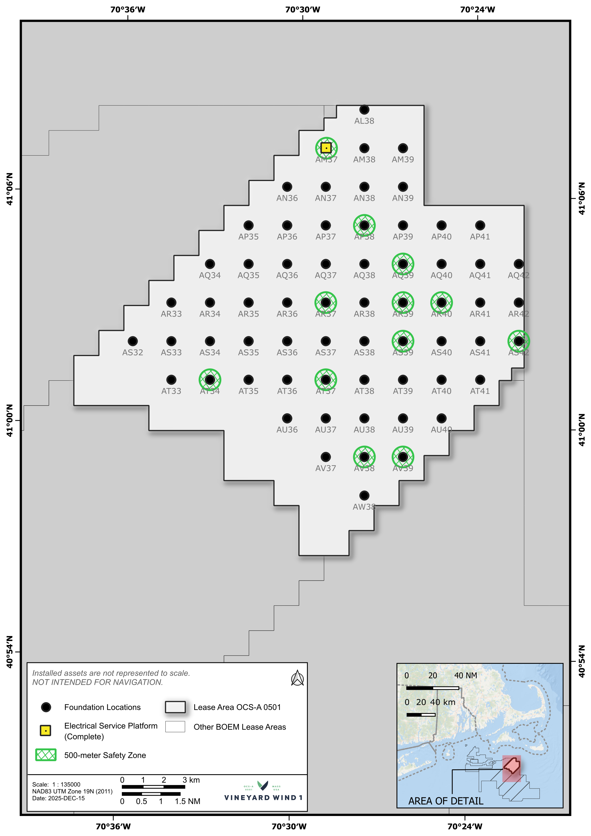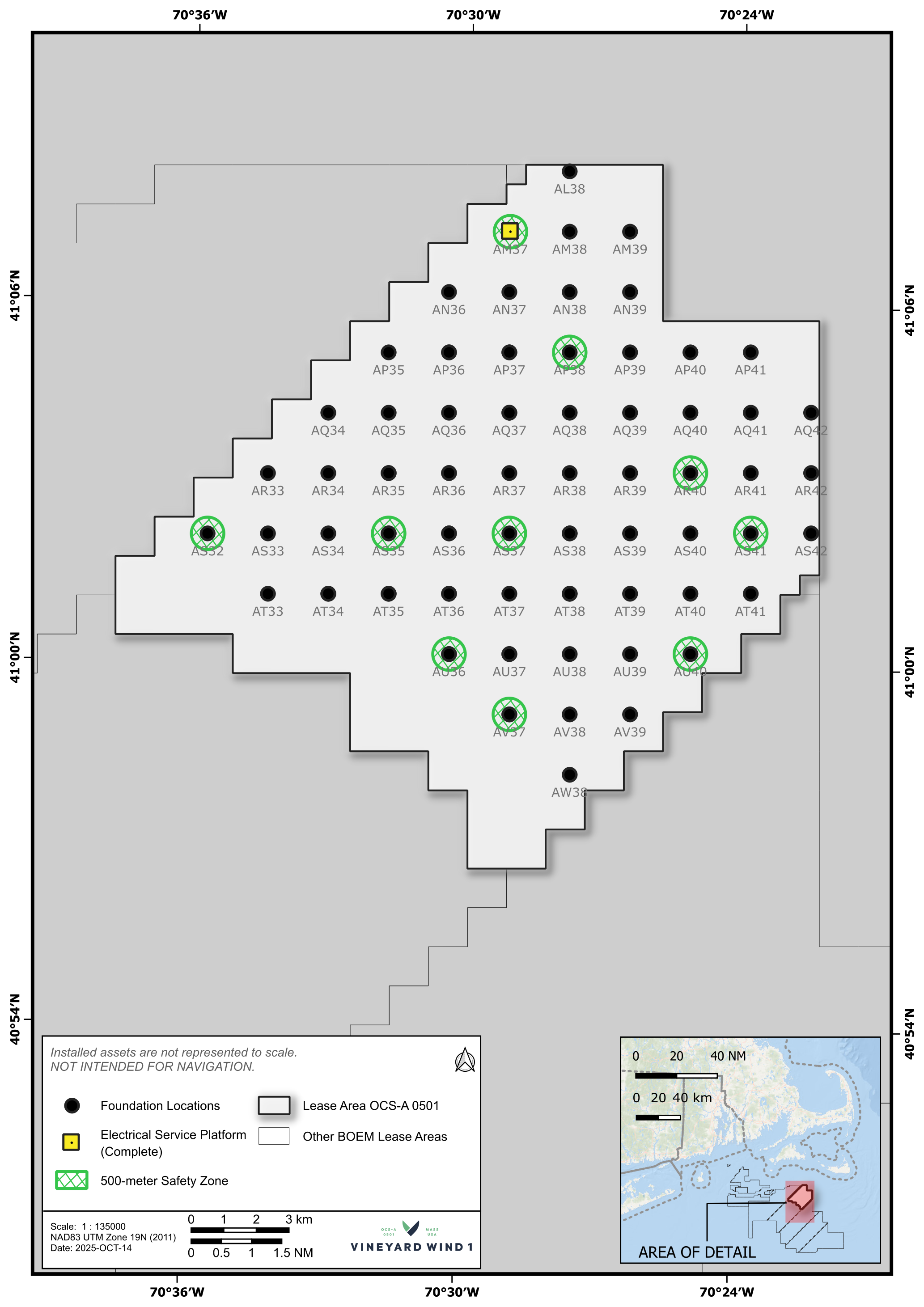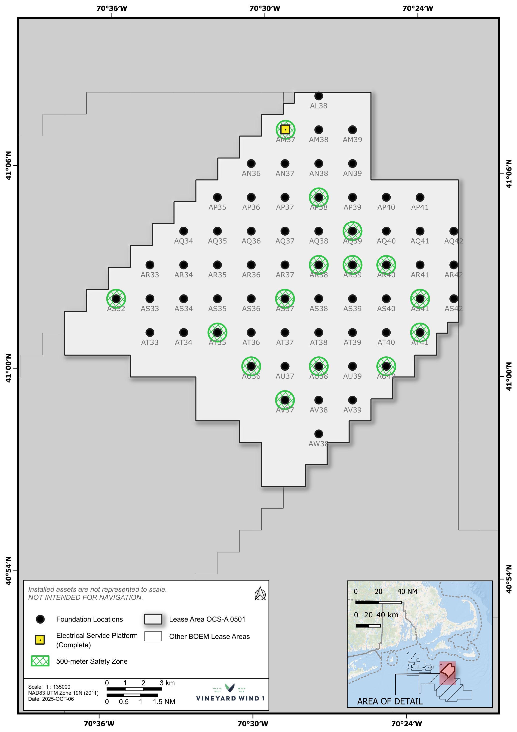 Vineyard Wind’s Offshore Wind Mariner Updates provide important details of operational activities within our lease area (0501 and a control area) including the type of work, locations, estimated timeline, and vessel information.